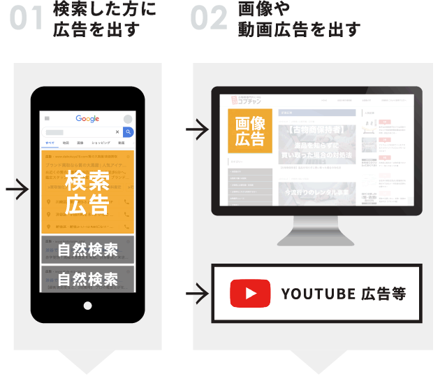 広告を配信することによって様々なデータが集まります。配信する前にはわからなかったホームページの改善点が見えてきます。それをもとにホームページを改善していくことによって広告の成果が倍増します。